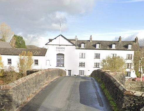 Turn off the A590 onto the bridge turning left leading towards the Lakeside and Hawkshead, passing the swan hotel on your right.